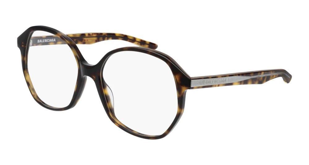 Formato feminino em borboleta com silhueta marcante. O núcleo metálico é trazido para fora das hastes, tornando-se a assinatura decorativa com logotipo e listras verticais em relevo. Hastes em acetato em camadas, com camada cristal por cima, revelando o núcleo metálico de forma tridimensional. Dobradiças com fechamento suave em ângulo de 45°. Acabamento branco que destaca o branding na versão preta. Também disponível em combinações de cores exclusivas.