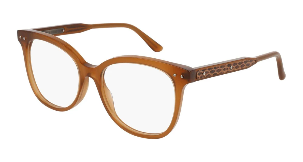 Este modelo representa uma evolução super leve e fina do conceito Micro Intrecciato, caracterizado por sua forma suavemente quadrada, refinada e feminina. O acetato polido à mão, com sua estrutura ultrafina e delicada, é discretamente enriquecido por novos insertos geométricos em couro de bezerro macio com estampa quente no motivo Intrecciato, aplicados nas hastes. Os principais elementos das hastes incluem: dois rebites icônicos (que combinam função técnica e estética), os insertos de couro com o padrão Intrecciato e uma dobradiça interna esculpida com placa embutida. Os modelos icônicos desta temporada ganham um acabamento raro e precioso, marcado pelo contraste expressivo entre o acetato e o luxuoso couro Ayers.