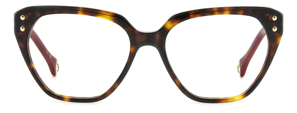 Confiante e expressiva, a coleção de óculos da Maison Herrera dá um toque moderno a formatos clássicos. Estas armações de grau não passarão despercebidas, com sua elegante estrutura em acetato, linhas esculturais e motivos geométricos em blocos de cores. Os detalhes característicos da marca completam o visual: tachas metálicas, o logotipo inconfundível nas hastes e um medalhão 3D com o monograma CH em vermelho decorando a parte interna das ponteiras. Observe atentamente a dobradiça metálica com um padrão listrado gravado.