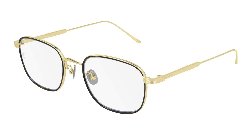 Formato retangular suave enriquecido pelo detalhe C de Cartier como elemento estético e funcional da ponte. Armação Winsdor combinada com estrutura em titânio para um design contemporâneo. Detalhe Godron realçado na parte externa das hastes. Logotipo Cartier gravado nas hastes e assinatura Double C Décor nas plaquetas nasais.