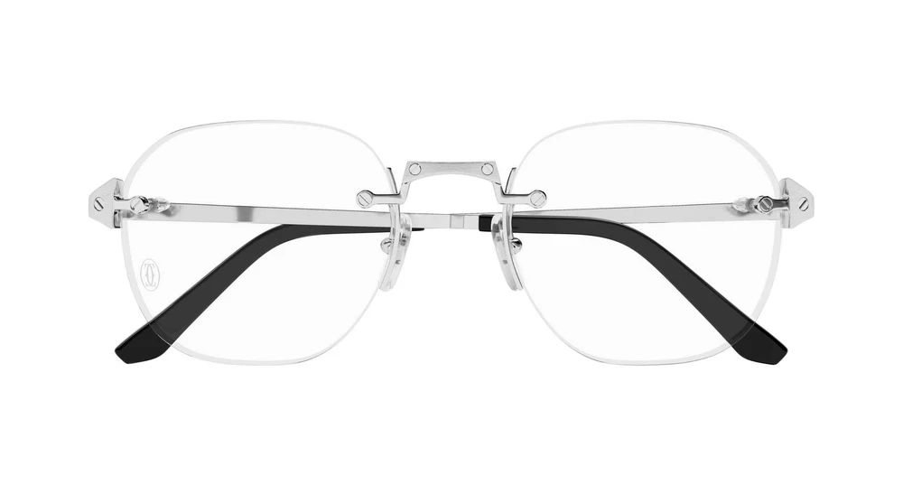 Forma pantos moderna para completar a linha Santos Classic com uma construção sem aro, leve e contemporânea. As lentes e as hastes icônicas Santos são adornadas pelo tradicional detalhe dos parafusos Santos. As ponteiras em acetato têm o formato que remete ao corte da caixa do relógio Santos e são enriquecidas com o icônico parafuso Santos. Acabamento precioso em ouro ou platina, com o logo Cartier gravado nas hastes.
