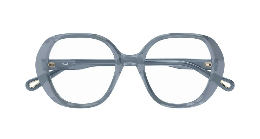 Estilo vintage com formato arredondado em material Bio Acetato. A tridimensionalidade da armação é proporcionada pelas múltiplas camadas de acetato. Combinação de acabamentos brilhantes e foscos. Recorte icônico em forma de gota nas pontas das hastes, que funciona como elemento estético e funcional para prender as joias dos óculos Chloé, enriquecido com o logo gravado.