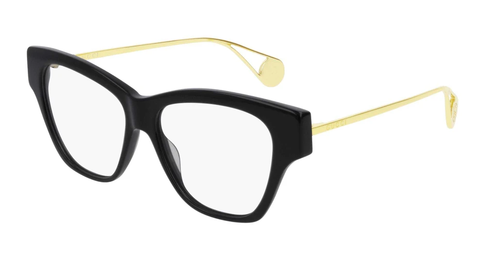 A estética dos modelos do desfile FW18 foi reinterpretada também para a linha óptica com esta armação em formato gatinho suave. Frente em acetato pontiagudo em contraste com hastes metálicas mais delicadas. Logotipo Gucci em letras nas hastes, combinado com o logotipo GG entrelaçado na ponteira. Paleta de cores sofisticada em tons sobre tons.