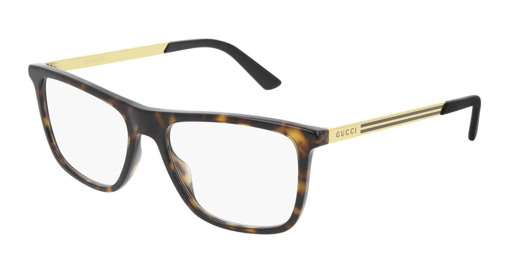 Armação masculina quadrada com inspiração nos anos 70 e ponte marcante, reinterpretando o conceito Vintage Web. Esmaltes Web e Sylvie em peças metálicas robustas nas extremidades. Logotipo Gucci em letras nas hastes. Paleta de cores clássica e sofisticada, realçada pelos tons característicos das linhas Web e Sylvie.