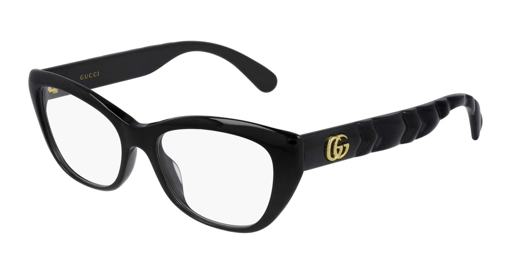 Nova linha fashion que expressa plenamente o estilo icônico e elegante da Gucci, diretamente inspirado na bolsa Marmont. Armação em formato gatinho com frente em acetato, destacando-se pela decoração matelassé nas hastes, que transmite a sensação de maciez característica dos artigos de couro da Gucci. Logotipo Gucci “running” nas hastes.
