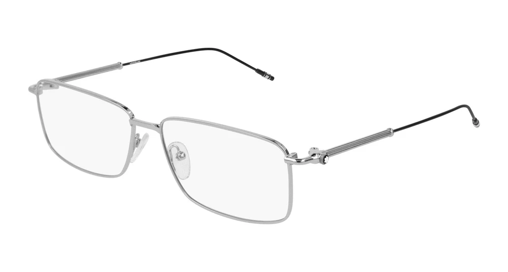 Formato retangular fácil de usar, ideal para o dia a dia. Estilo totalmente metálico, leve e sofisticado. Hastes finas com seção tubular, adornadas com o elegante motivo godron. Emblema autêntico “snow cap” aplicado nas dobradiças. Detalhe dos 3 anéis nas ponteiras, inspirado na icônica caneta Meisterstück da Montblanc.