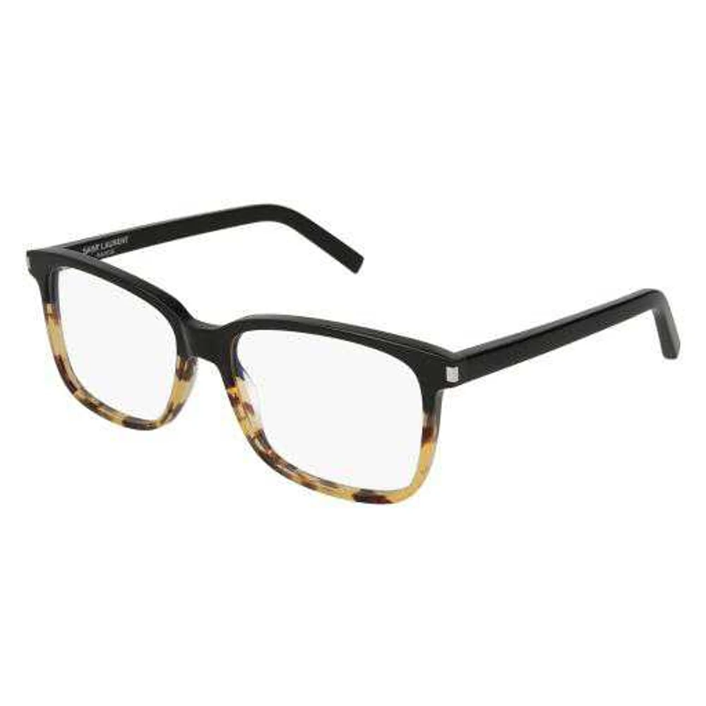 Óculos de acetato feitos à mão. Formato retangular clássico masculino. Logotipo Saint Laurent gravado a laser tom sobre tom na parte externa de ambas as hastes.