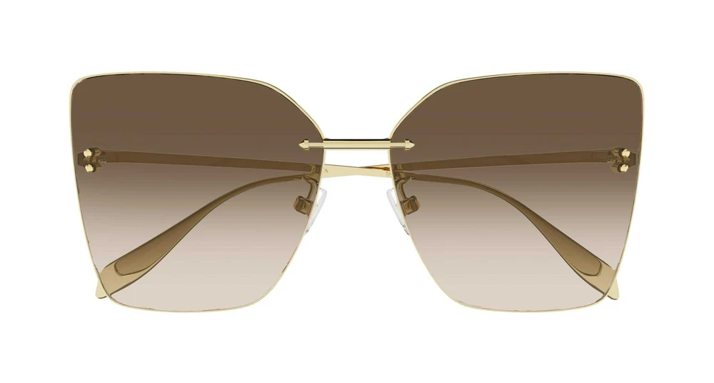 Piercing Bridge inspira-se nos piercings corporais, combinando o piercing sobre o nariz com silhuetas sofisticadas, para um look rebelde, mas elegante. Formato quadrado feminino extragrande embutido em um aro fino de metal decorado com um detalhe de piercing sobre o nariz. O logotipo Alexander McQueen é gravado a laser nas hastes. A paleta de cores inclui metais brilhantes para a armação e hastes combinadas com lentes degradê coloridas e femininas. Algumas referências possuem banho de galvanização no nariz em contraste com a armação.