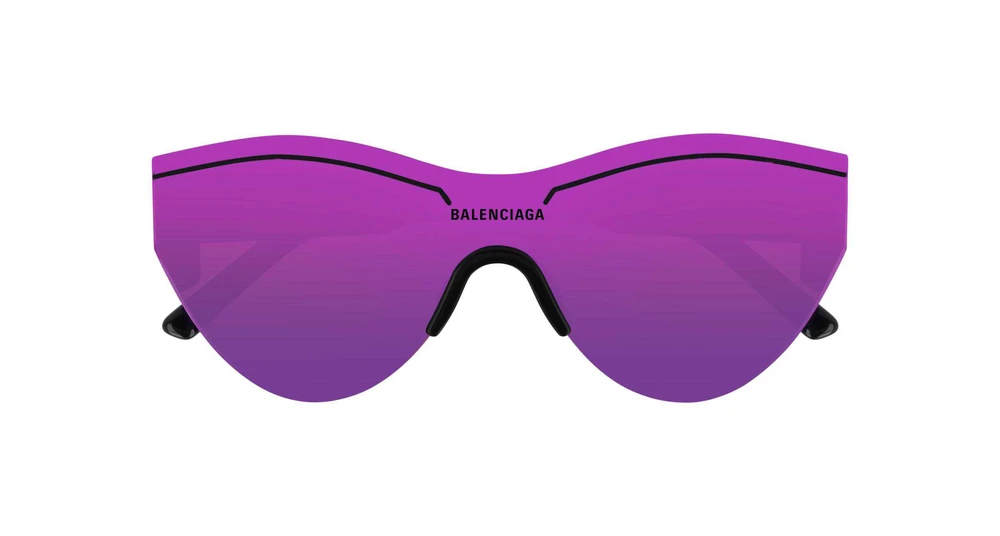 Máscara feminina baseada em óculos de proteção de alta tecnologia com inspiração esportiva. Faixas esmaltadas na barra superior com logotipo central na parte da frente das armações. Logotipo a laser na ponteira esquerda. Combinações de cores esportivas com lentes espelhadas.
