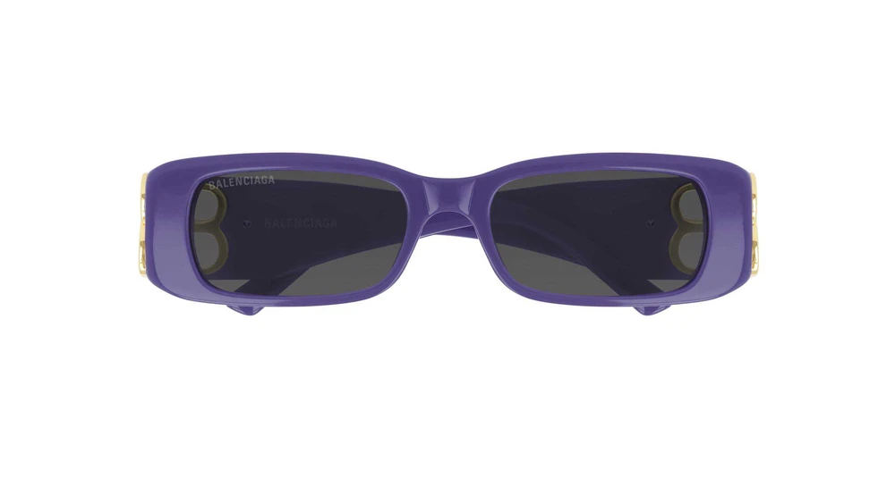 Formato oval sinuoso com inspiração vintage em acetato com charneiras BB douradas simetricamente dobráveis. Disponível em cores clássicas ou em combinações de cores inspiradas nos anos 1980. Logotipo Balenciaga gravado a laser na lente direita.