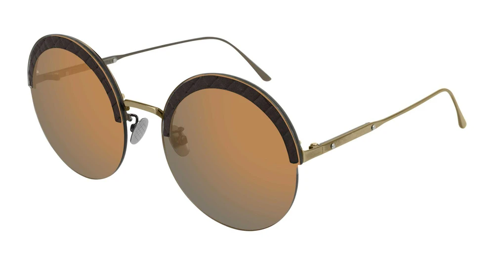 Forma redonda e refinada, enriquecida por insertos de couro com o padrão Micro Intrecciato aplicados na parte superior das lentes, resultando em uma combinação moderna de materiais. Uma lâmina metálica aplicada atrás da “sobrancelha” de couro confere estabilidade ao modelo. Inspirado nos acessórios de couro da marca. Nova e moderna paleta de cores. O logotipo BOTTEGA VENETA é elegantemente gravado a laser nas hastes.