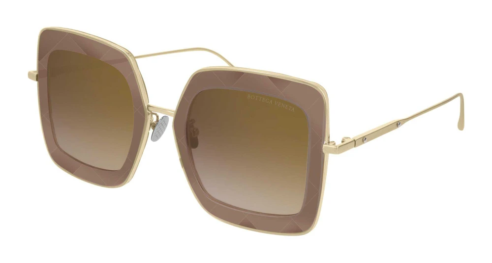 Uma forma quadrada oversized define este novo conceito, inspirado nos acessórios para casa da Bottega Veneta. O Intrecciato ganha proporções amplas, mas permanece leve graças ao material injetado e aos tons opalinos utilizados na paleta de cores. O modelo apresenta construção totalmente em metal, proporcionando leveza e um visual moderno. O logotipo BOTTEGA VENETA é elegantemente gravado a laser nas hastes e na lente esquerda. Modelo com ajuste inteligente para o mercado asiático (Smart Asian Fitting).