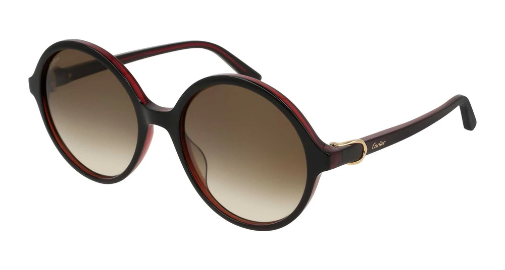 Interpretação moderna e elegante do C Décor, em uma versão minimalista e sofisticada. Formato redondo feminino, totalmente em acetato. O C de Cartier atua como elemento estético e funcional da dobradiça. Detalhes metálicos com acabamento precioso em ouro e platina. Logotipo Cartier gravado nas hastes.
