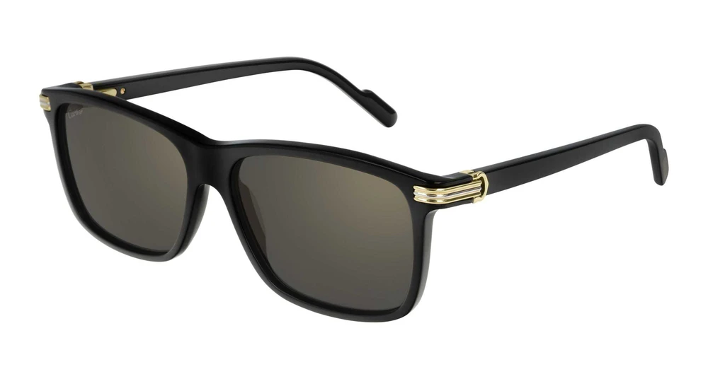 Novo formato redondo contemporâneo, enriquecido pela icônica combinação do Godron e do C de Cartier, que atua como elemento estético e funcional na dobradiça. Novas lentes coloridas com efeito espelhado em dourado claro e exclusivo tratamento antirreflexo vermelho, característico da Cartier. Assinatura Double C Décor nas plaquetas nasais.