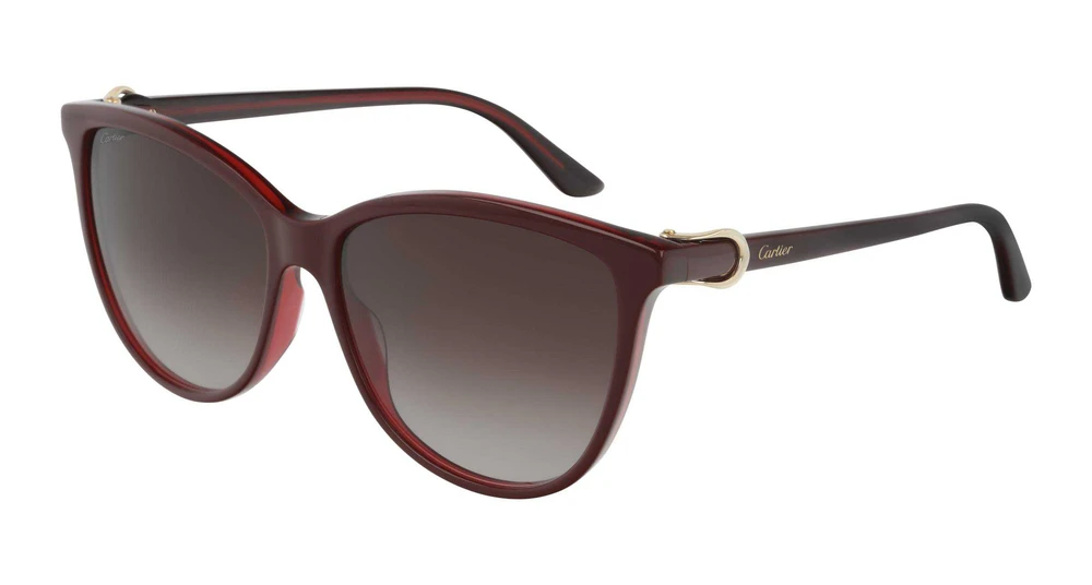 Interpretação moderna e elegante do detalhe C Décor, em uma versão minimalista e sofisticada. Formato feminino em leve gatinho, totalmente em acetato. O C de Cartier aparece como elemento estético e funcional na dobradiça. Detalhes metálicos com acabamento precioso em ouro e platina. Logotipo Cartier gravado nas hastes.