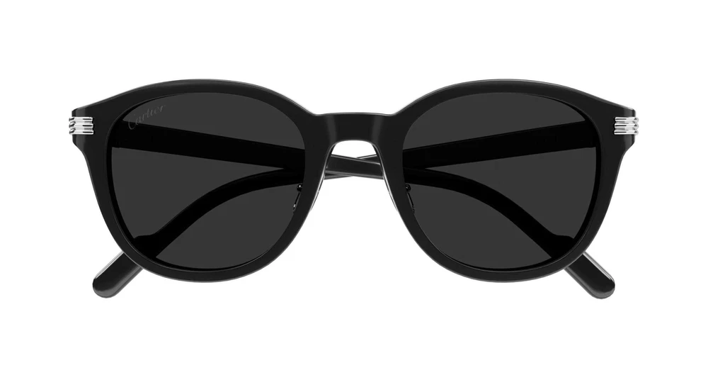 Reinterpretação contemporânea dos emblemáticos modelos em acetato lançados nos anos 80. Formato pantos moderno, enriquecido pela combinação icônica do Godron e do C de Cartier, que atuam como elementos estéticos e funcionais da dobradiça. Placa com o logotipo Cartier nas ponteiras, inspirada em estilos vintage.
