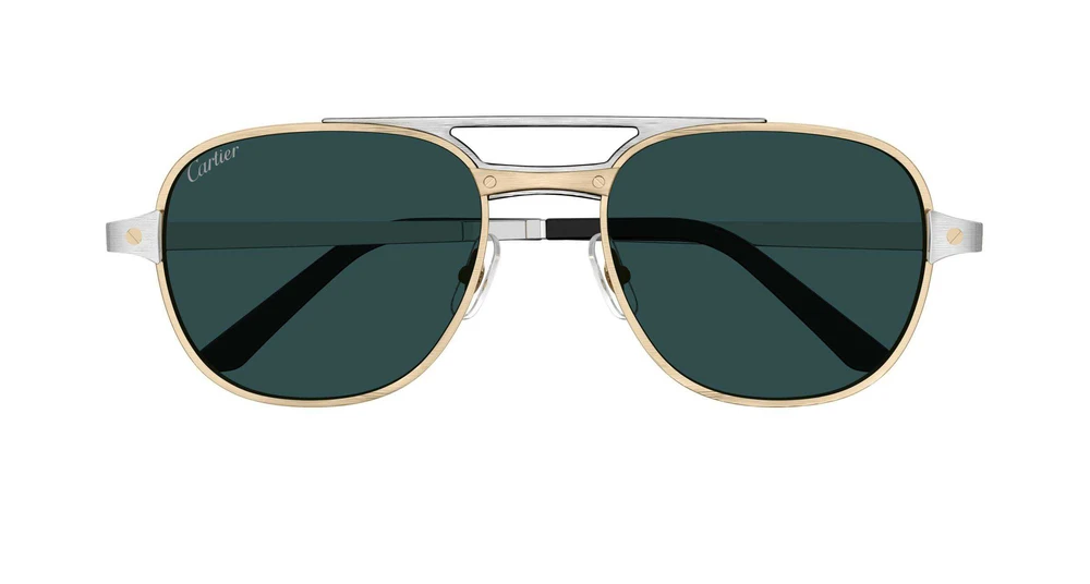Nova construção ousada em camadas, projetada para destacar ainda mais os icônicos parafusos Santos, aplicados tanto na frente quanto nas hastes. Formato navigator clássico com aro completo, que transmite um visual masculino e audacioso. Acabamentos preciosos em ouro, platina, rutênio escuro e PVD preto, realçando os detalhes dos parafusos Santos e a construção em dupla camada. Ponteiras em acetato, adornadas com o motivo dos parafusos, garantem conforto e estabilidade à armação.