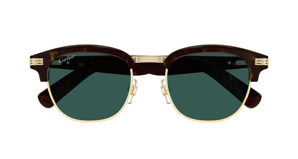 Nova versão moderna e masculina da consagrada construção em acetato da linha Première. Os detalhes Godron e C de Cartier embelezam a dobradiça e a ponte, atuando como elementos funcionais e estéticos. Acabamentos preciosos em ouro ou platina, com assinatura Double C Décor nas ponteiras das hastes e nas plaquetas nasais.