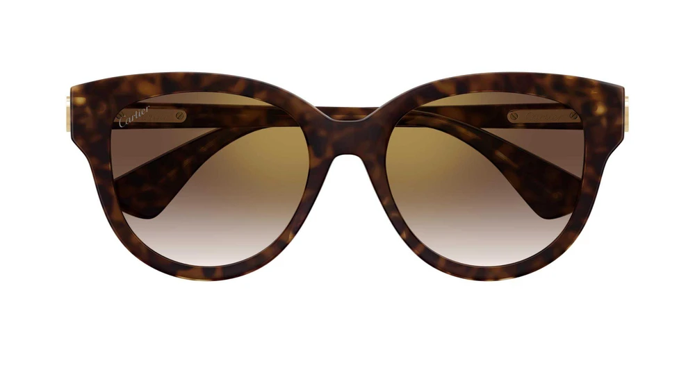 Nova armação em acetato marcante e ultra feminina, caracterizada por volumes facetados chanfrados. Formato soft cat eye fácil de usar, para um visual chique e sofisticado. Dobradiça enriquecida com o icônico medalhão Double C, adornado com detalhes em esmalte feitos à mão, em tom sobre tom com a armação em acetato. Acabamento precioso em ouro e logotipo Cartier gravado nas ponteiras das hastes.