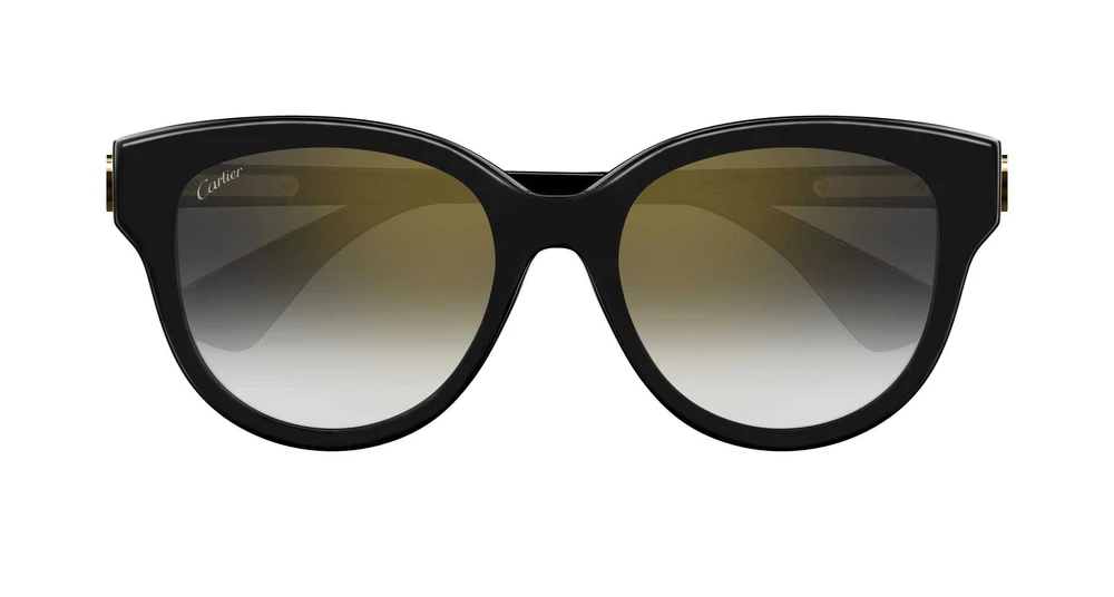 Nova armação em acetato, ultra feminina e marcante, caracterizada por volumes facetados chanfrados. Formato soft cat eye fácil de usar, para um visual chique e sofisticado. Dobradiça enriquecida com o icônico medalhão Double C, adornado com detalhes em esmalte feitos à mão, em tom sobre tom com a armação em acetato. Acabamento precioso em ouro e logotipo Cartier gravado nas ponteiras das hastes.