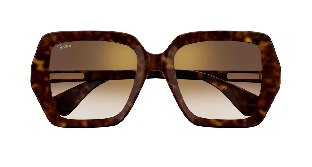 Nova armação em acetato marcante e ultra feminina, caracterizada por volumes facetados chanfrados. Formato clássico oversized quadrado, para um visual chique e sofisticado. Dobradiça enriquecida com o icônico medalhão Double C, adornado com detalhes em esmalte feitos à mão, em tom sobre tom com a armação em acetato. Acabamento precioso em ouro e logotipo Cartier gravado nas ponteiras das hastes.