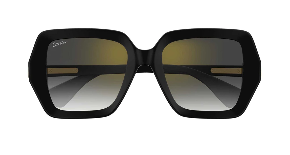 Nova armação em acetato marcante e ultra feminina, caracterizada por volumes facetados chanfrados. Formato clássico oversized quadrado, para um visual chique e sofisticado. Dobradiça enriquecida com o icônico medalhão Double C, adornado com detalhes em esmalte feitos à mão, em tom sobre tom com a armação em acetato. Acabamento precioso em ouro e logotipo Cartier gravado nas ponteiras das hastes.