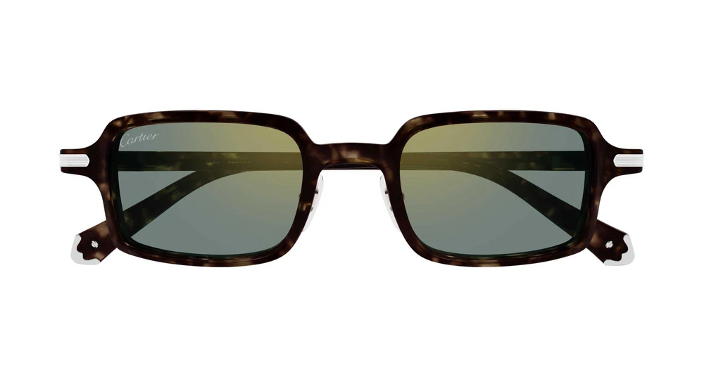 Nova estética leve em acetato, enriquecida por discretos elementos metálicos: o ícone Godron na dobradiça e peças sofisticadas nas pontas das hastes, inspiradas na coleção de artigos de couro. Formato moderno e unissex, retangular estreito, perfeito para um visual estiloso e icônico. Acabamento precioso em ouro ou platina, combinado com lentes coloridas em tom pastel e logo Cartier nas hastes.