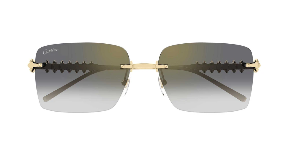 O icônico Clash de Cartier é fielmente interpretado pela primeira vez na coleção de óculos, apresentado nas novas hastes metálicas distintas. Formato quadrado clássico em construção sem aro, conferindo um visual feminino. Cada Picot possui leve mobilidade, reproduzindo o movimento característico da joia. Acabamento precioso em ouro, enriquecido com o logotipo Cartier nas ponteiras das hastes e lentes dedicadas em 1 SKU.