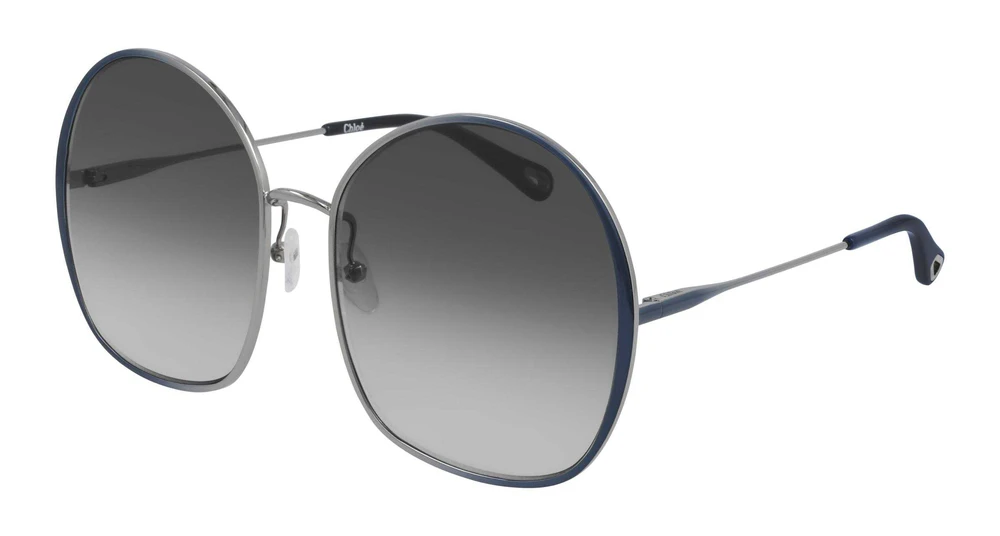 Formato redondo oversized fashion com lentes degradê e inspiração galvanizada em arco-íris. Hastes de metal com logo discreto gravado a laser no topo da haste esquerda. Pontas das hastes em acetato com o icônico recorte em forma de gota, que funciona como elemento estético e funcional para prender as joias dos óculos Chloé, enriquecido com logo gravado. Logo Chloé nas plaquetas do nariz.