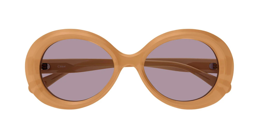 Estilo vintage com nova forma oval em material Bio Acetato. A tridimensionalidade da armação é conferida pelas múltiplas camadas de acetato. Mistura de acabamentos brilhantes e foscos nas versões disponíveis. O icônico recorte em formato de gota nas pontas das hastes funciona como um elemento estético e funcional para fixar as joias da Chloé, enriquecido com o logo gravado.