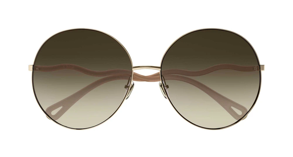 Estilo de formato redondo em uma armação full rim de metal leve, com hastes onduladas distintas inspiradas no icônico tênis Lauren da Chloé. As hastes são totalmente revestidas com uma capa de silicone com acabamento fosco. O icônico recorte em forma de gota na ponta das hastes serve como um detalhe estético e funcional para prender as joias dos óculos Chloé, enriquecido com o logotipo gravado. Apresenta as novas lentes de poliamida de base biológica.