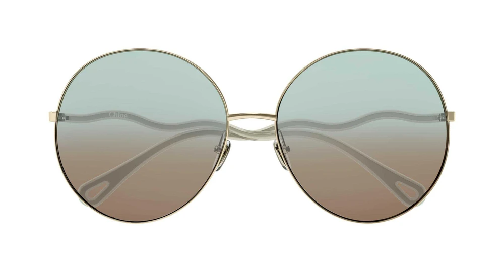 Forma redonda em metal leve com aro completo, apresentando hastes onduladas distintas inspiradas nos icônicos tênis Lauren da Chloé. As hastes são revestidas integralmente com silicone em acabamento fosco. O recorte em forma de gota nas pontas das hastes serve como elemento estético e funcional para fixar as joias da Chloé, enriquecido com o logo gravado. Equipado com as novas lentes em poliamida de base biológica.