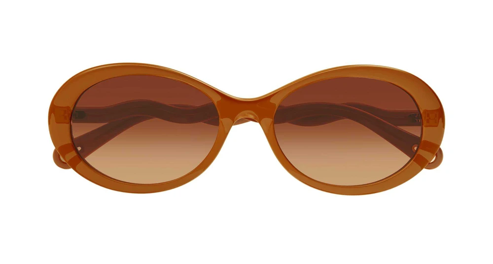 Formato oval inspirado nos anos 60, em material de acetato de base biológica, com lentes duplo degradê. Hastes onduladas inspiradas no icônico código de ondas dos acessórios da Chloé. Recorte em forma de gota na ponta das hastes, assinatura estética e funcional da marca.