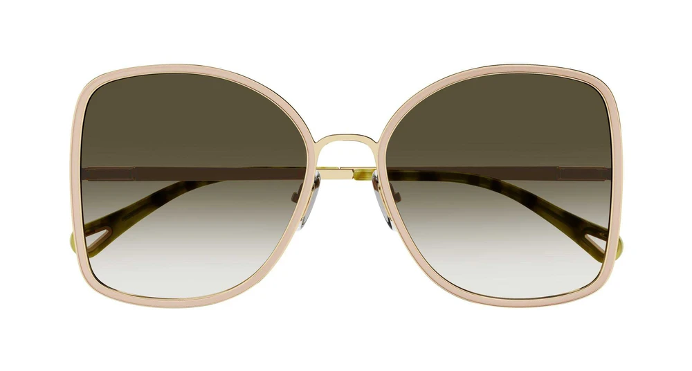 Estilo metálico quadrado oversized com esmalte gravado na frente e nas hastes. O padrão esmaltado tem efeito confete, inspirado nos botões de cerâmica da primeira coleção prêt-à-porter de Gabriela Hearst para a Chloé. Variedade de SKUs com esmaltação monocromática. Pontas das hastes em acetato de base biológica com o icônico recorte em forma de gota, característico da marca.