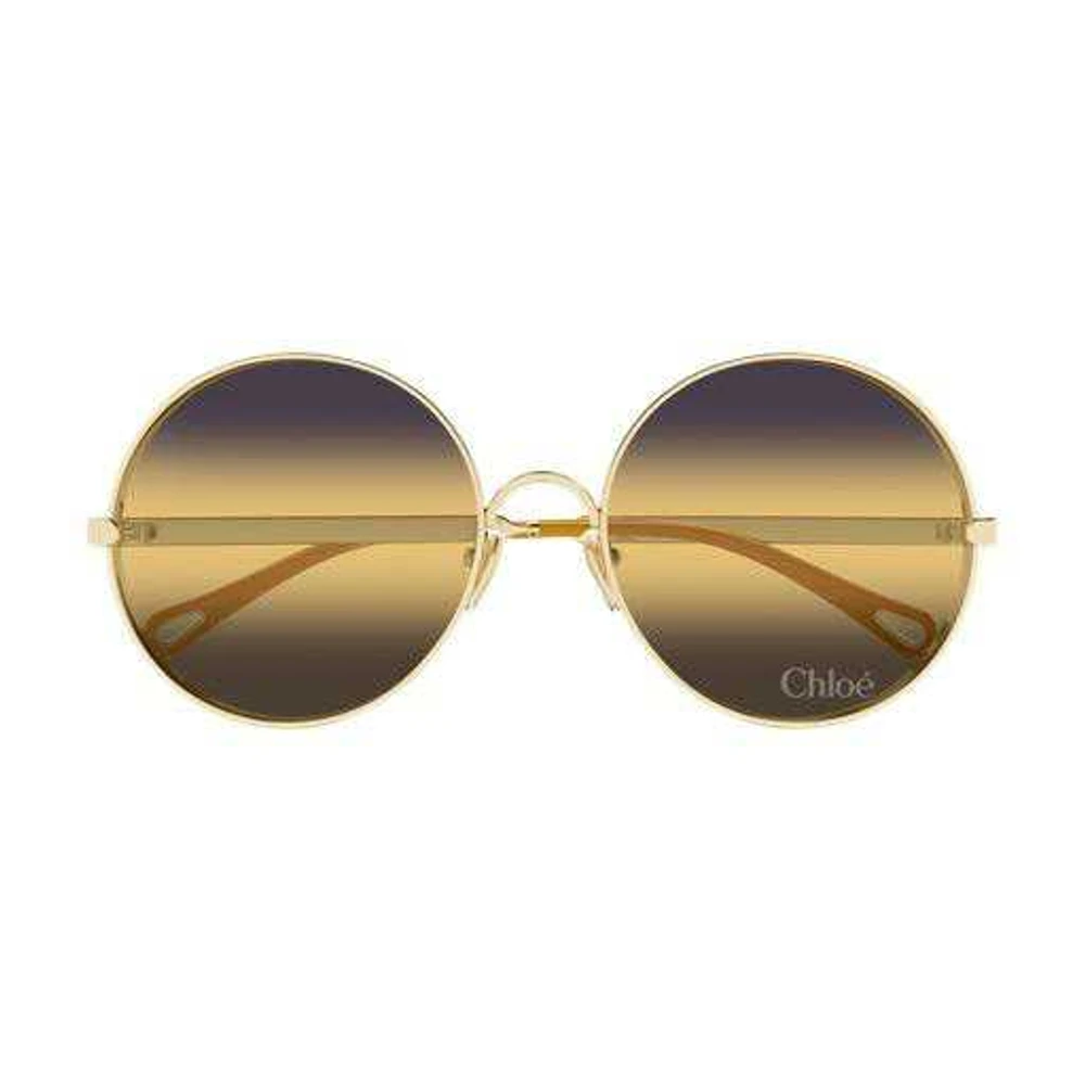 Estilo oversize inspirado nos anos 70. Lentes degradês triplos com o logotipo da Chloé a laser no lado esquerdo. Formato arredondado com aro espesso. Ponteiras coloridas evocando os tons das lentes.