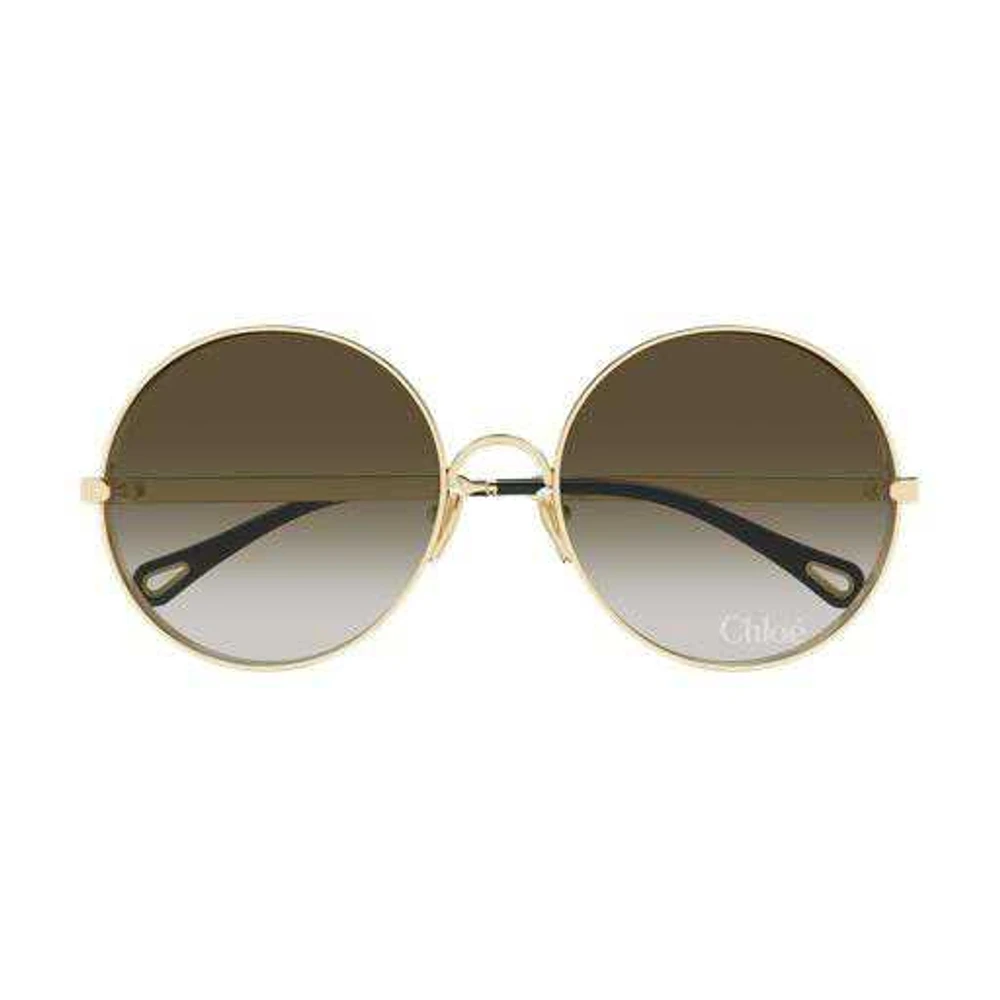 Estilo oversize inspirado nos anos 70. Lentes degradês triplos com o logotipo da Chloé a laser no lado esquerdo. Formato arredondado com aro espesso. Ponteiras coloridas evocando os tons das lentes.