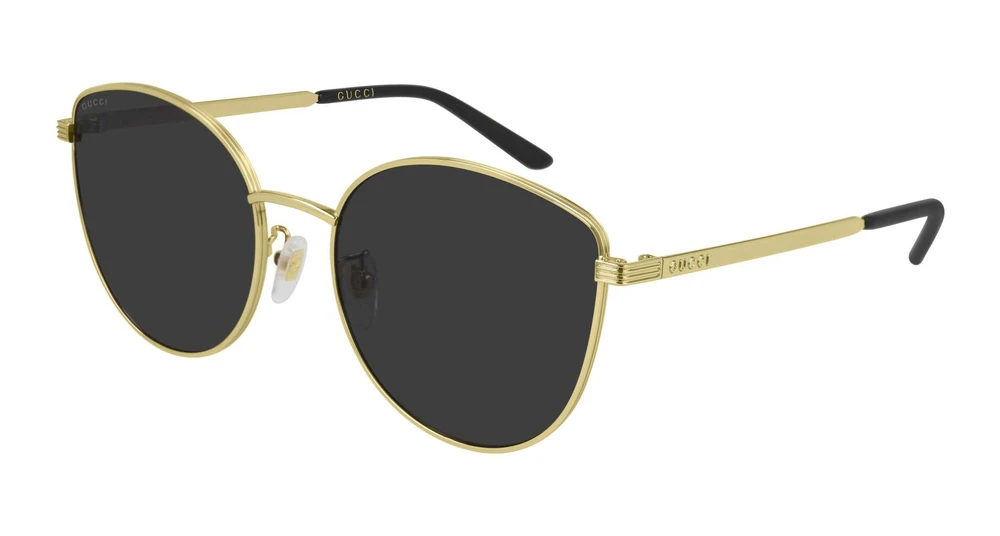 Conceito moderno caracterizado por decorações sutis e geometria refinada. Armação feminina em metal no formato gatinho. As bordas da parte frontal e o início das hastes são cuidadosamente gravados com listras metálicas. Ponteiras em plástico enriquecem o visual como um todo. Logotipo Gucci em letras nas hastes.