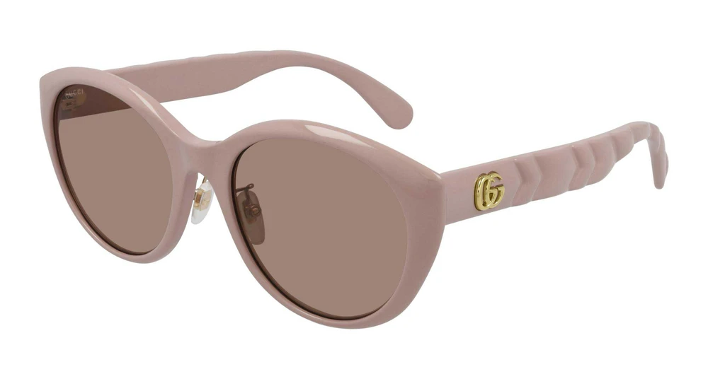 Nova linha fashion que expressa plenamente o estilo icônico e elegante da Gucci, diretamente ligada à bolsa Marmont. Formato gatinho arredondado feminino, com destaque para a decoração matelassé nas hastes, que transmite a sensação de maciez típica dos artigos de couro da Gucci. Logotipo “running” da Gucci nas hastes.