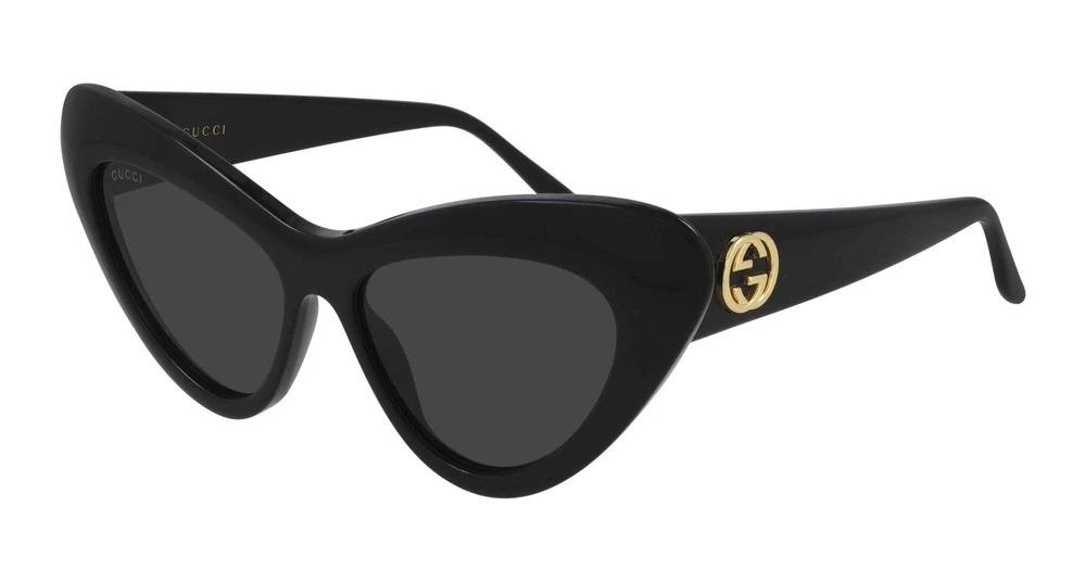 Conceito caracterizado por volumes que destacam o brilho e a espessura do material. Gatinho ultrafeminino pontiagudo em acetato. Logotipo Gucci entrelaçado nas hastes. Modelo disponível em elegantes cores escuras. Uma REF com lentes verdes contrastantes completa a paleta.