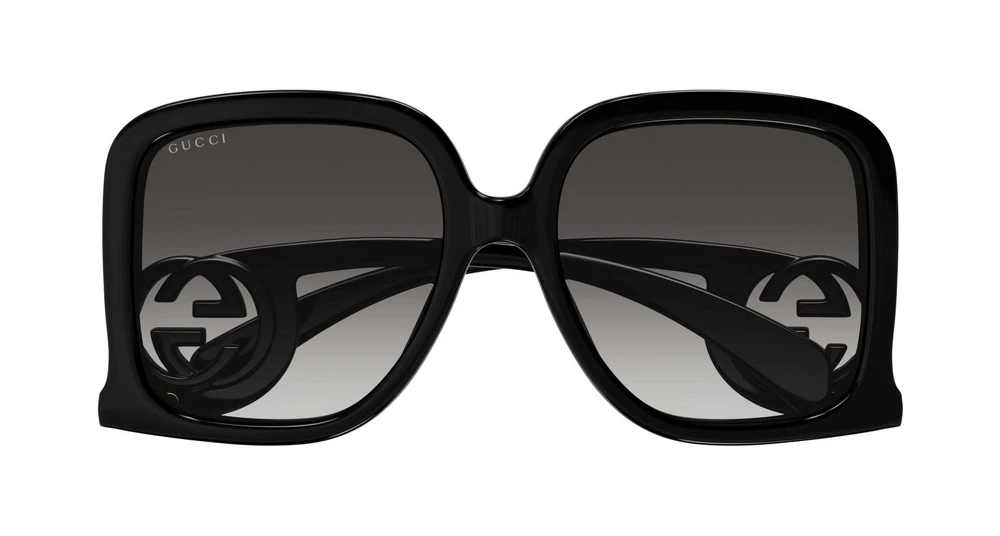 Formato quadrado extragrande. Paleta de cores descontraída e atual. Logotipo GG Interlocking máxi integrado nas hastes. Formato reconhecível e extravagante.
