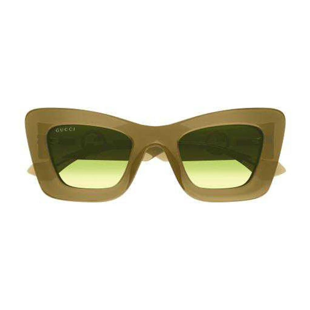 Verão, frescor e cor são as principais características distintivas desta narrativa. Formato extragrande com espessuras consistentes e plásticos transparentes e brilhantes. Formato gatinho extragrande em acetato robusto. Logotipo Gucci Blondie flutuando na construção das hastes. Paleta de cores transparente comercial e moderna.