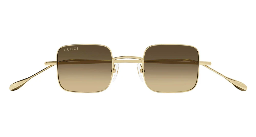 Lançados na cruise collection SS24, esses estilos em metal foram reforçados com novos formatos e cores. Formato retangular. Logotipo Gucci em letras nas hastes. Paleta de cores descontraída e de verão, apresentando diversas cores degradê.