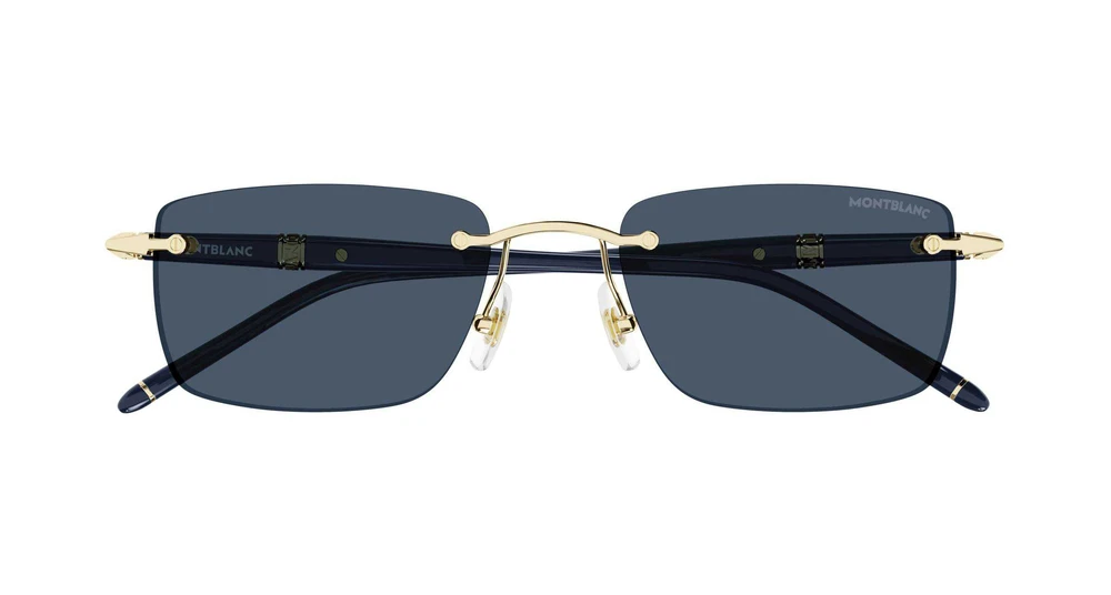 Os óculos de sol sem aro fazem parte do pilar Meisterstück e visam comemorar o aniversário da Meisterstück com uma nova família inspirada em instrumentos de escrita. A silhueta da haste é inspirada no formato característico dos instrumentos de escrita Meisterstück. O elemento icônico da marca é representado pelo aro de metal nas hastes com o logotipo Montblanc e um aro de metal mais sutil nas ponteiras. Este modelo foi escolhido para a campanha publicitária internacional. A paleta de cores apresenta o clássico preto da Montblanc combinado com dourado e prateado, um clássico azul-escuro e um novo cinza, todas as cores lembram o clássico Meisterstück da Montblanc.