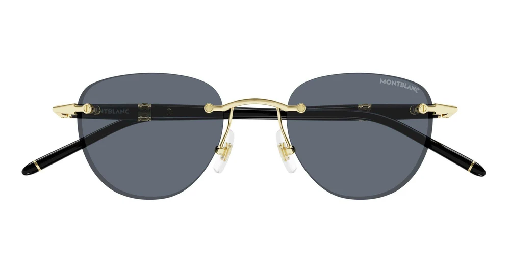 Formato pantos sem aro que pertence à família Diplomat, inspirada nos instrumentos de escrita Meistertsuck. As lentes espessas foram combinadas com hastes injetadas, cujo design imita os instrumentos de escrita. O elemento de branding é representado por um anel em metal com o logotipo em letras da Montblanc e um detalhe esmaltado delicado nas ponteiras. O modelo está disponível com lentes nas cores azul, vermelho e alaranjado. Uma referência caracterizada por um efeito arranhado nas hastes.