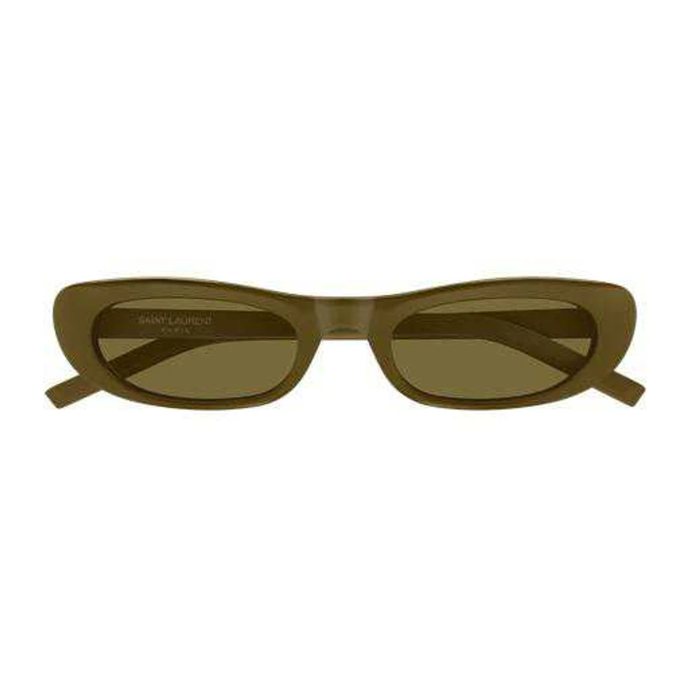 O modelo estreito feminino em acetato tem forte inspiração vintage, relacionado as peças da coleção feminina outono 2022 de Anthony Vaccarello. A frente é caracterizada por perfis arredondados e ousados.
