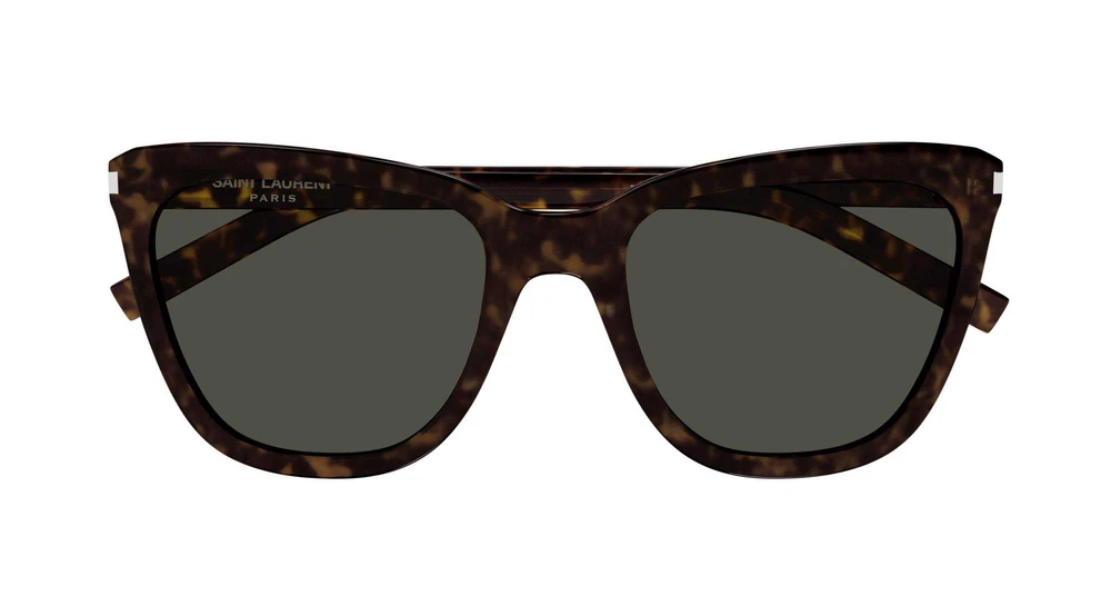 Forma feminina de fácil uso. O logotipo Monogram é elegantemente reinterpretado por meio de um novo e inovador logo externo integrado à dobradiça. O modelo está disponível em uma ampla variedade de cores icônicas da Saint Laurent, com o logo “YSL” Cassandre em tom sobre tom ou em contraste dourado ou prateado. Fabricado na Itália. Logotipo “YSL” aplicado na parte externa de ambas as hastes.