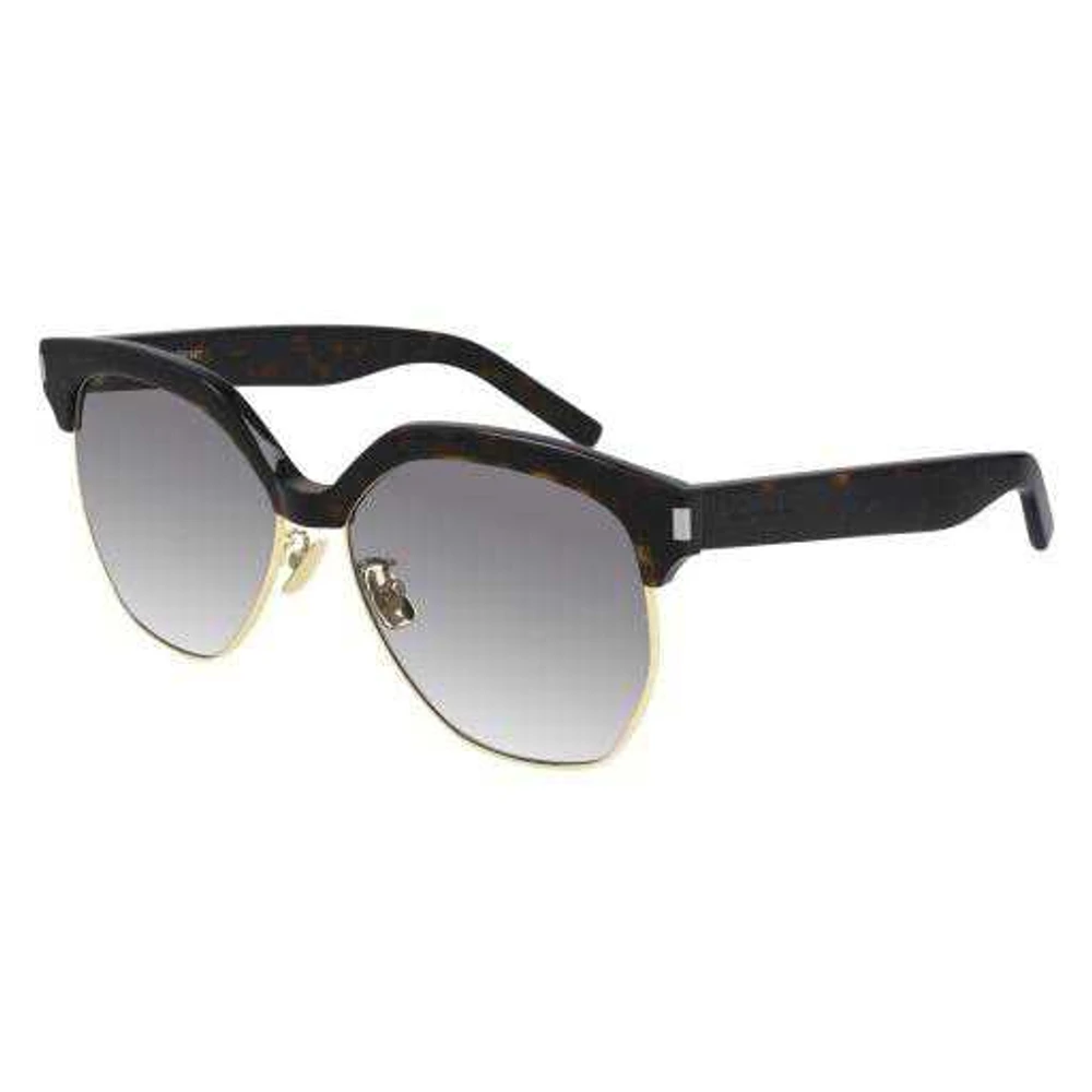Um modelo combi feminino extragrande caracterizado por uma ousada barra de acetato na altura da sobrancelha. O modelo é adornado com os detalhes do icônico corner angle em metal. O logotipo Saint Laurent é gravado a laser em ambas as hastes.