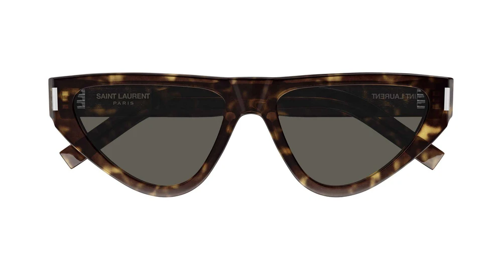 com os detalhes do icônico corner angle em metal. O logotipo Saint Laurent é