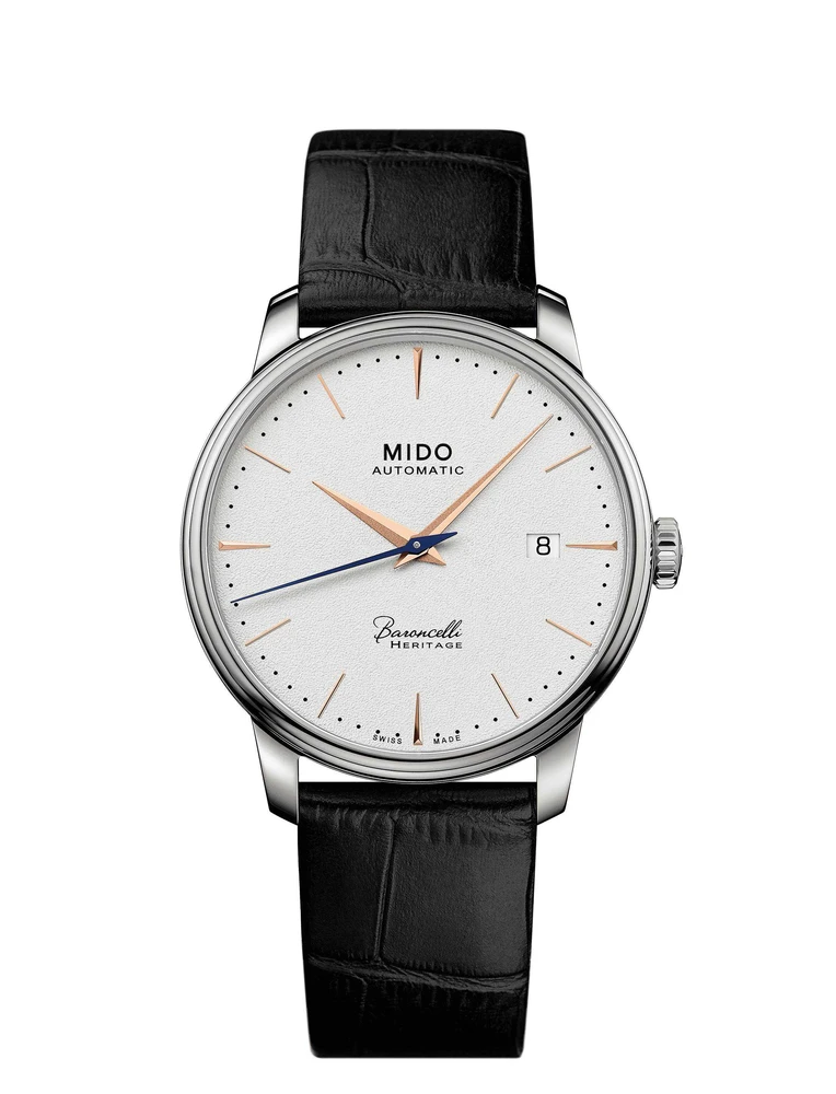 Projetados como um par, os relógios suíços Baroncelli Heritage se destacam por sua leveza, fineza e linhas extremamente puras, proporcionadas pelos ponteiros duplos e pelo duplo friso decorativo. Equipados com um movimento automático, esses relógios clássicos e atemporais são a expressão perfeita da expertise da MIDO.