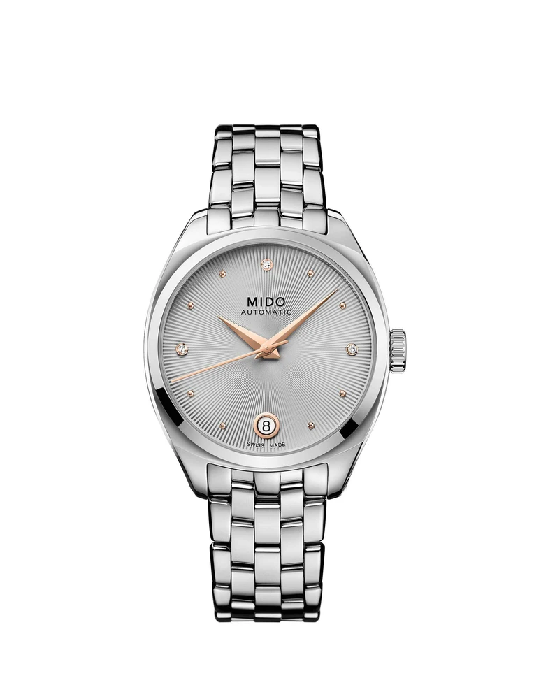 O relógio suíço Belluna Royal exibe um design original e elegante graças à sua caixa em formato de almofada, com curvas harmoniosas e um mostrador estampado com um motivo raiado em estilo guilloché. Seu coração pulsa no ritmo do movimento automático Calibre 80, com até 80 horas de reserva de marcha.